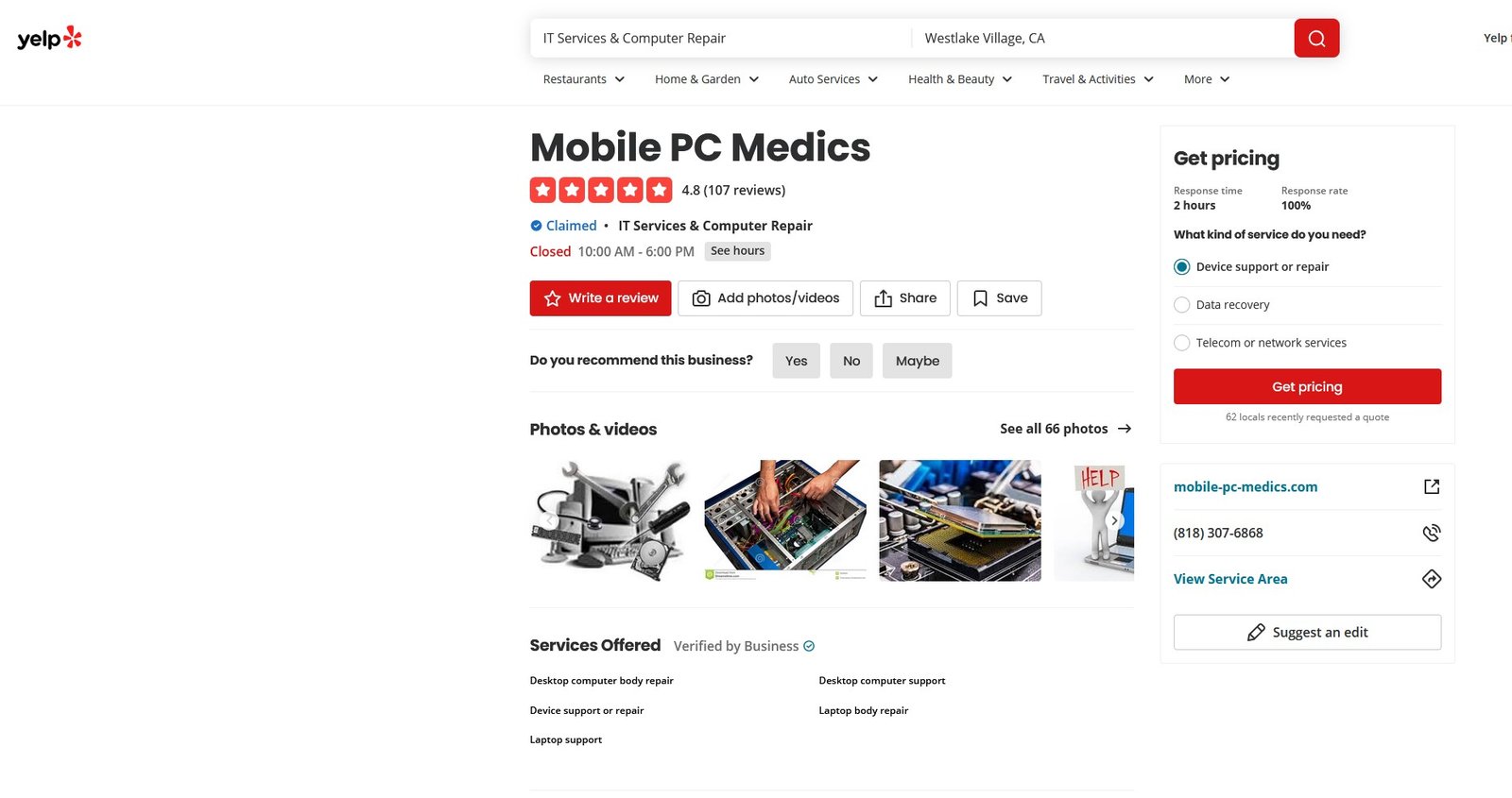 A certified Mobile PC Medics specialist arrives at your location on time.